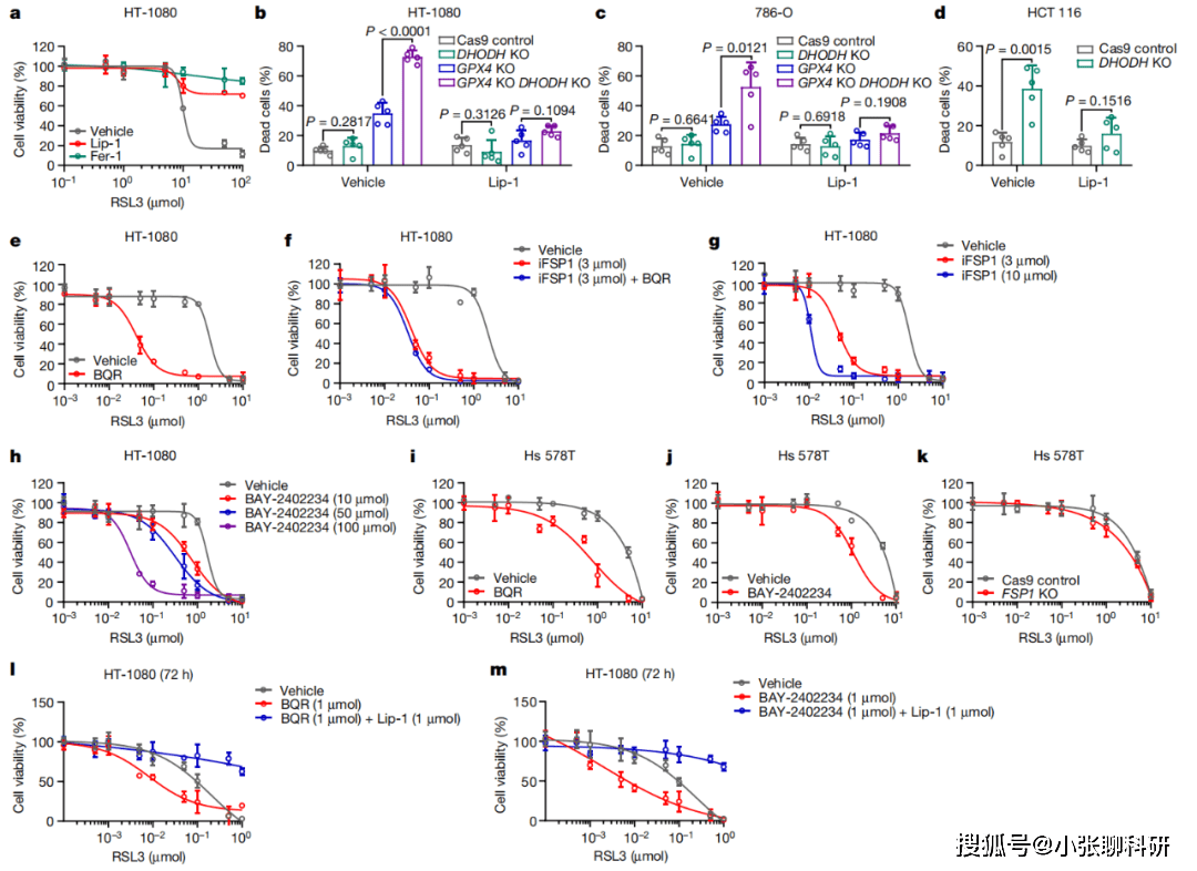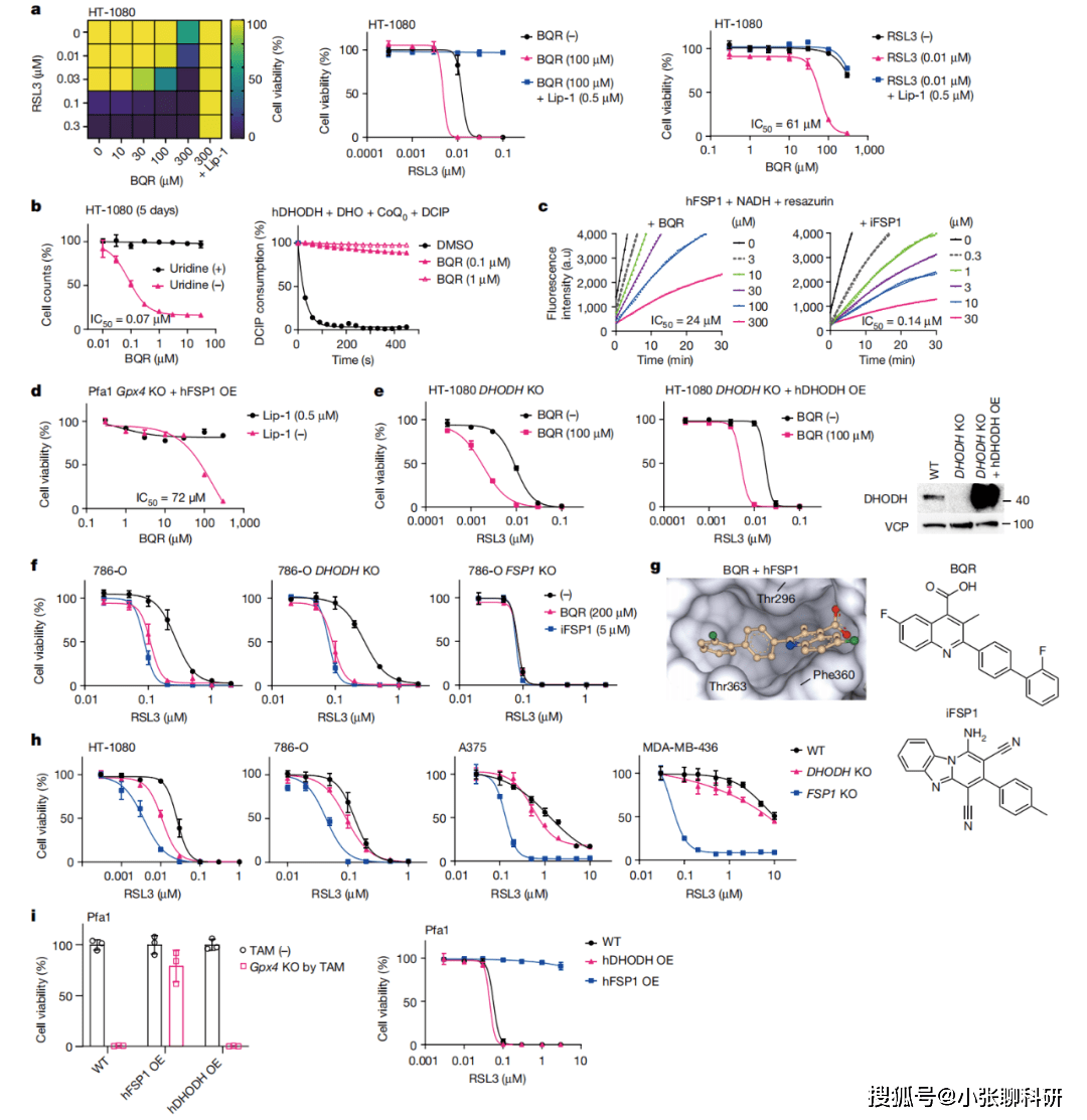 4. 质疑文章里使用的BQR浓度(1μM)不能抑制FSP1,因此产生的RSL3敏感性提高是由于作用于DHODH导致。