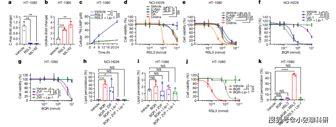这篇文章首先对GPX4抑制剂处理的细胞进行非靶向代谢组学分析发现,嘧啶合成通路可能与铁死亡存在联系。