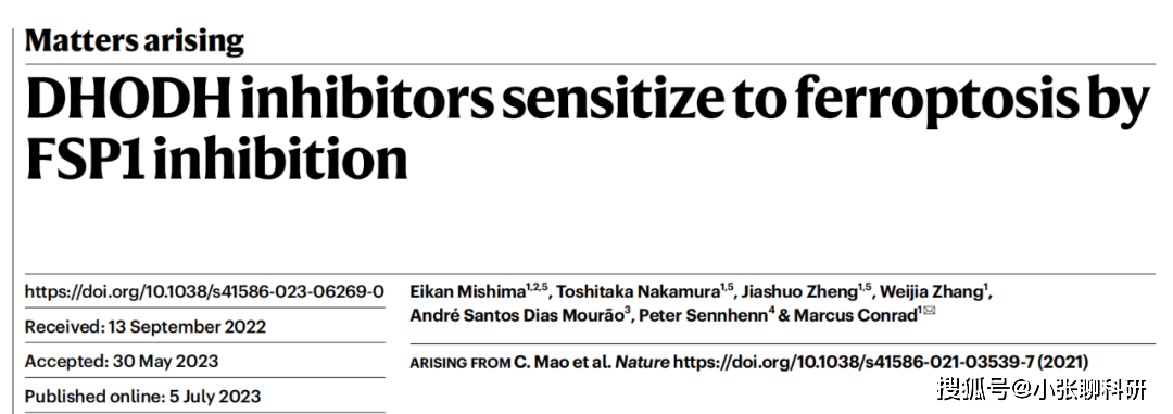 直到今年的7月(时隔2年多),Nature上发表了针对这一研究的质疑论文:DHODH inhibitors sensitize to ferroptosis by FSP1 inhibition。