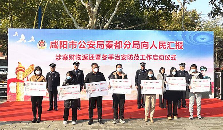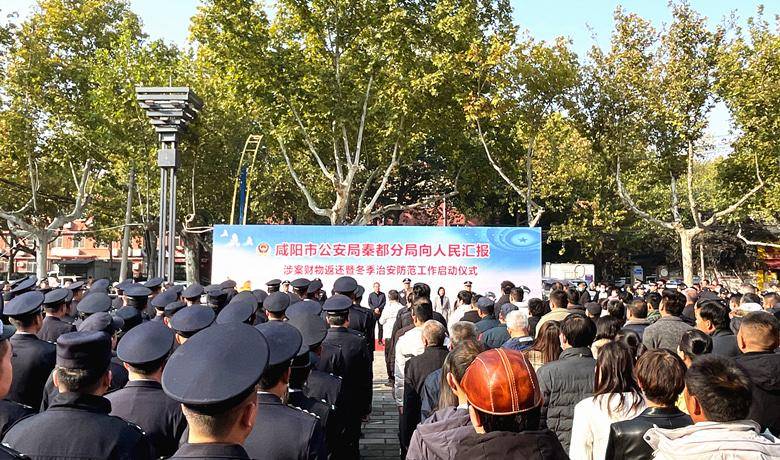 三秦都市报-三秦网讯(记者 陈奋翔)11月14日下午,咸阳市公安局秦都分局在市区中华广场举行“向人民汇报”涉案财物返还暨冬季治安防范工作启动仪式,秦都区委常委、政法委书记孔睿,秦都区副区长、公安分局党委书记、局长姚定国,公安分局党委副书记、政委桂存社,秦都区委政法委常务副书记陈平鸽及分局党委其他班子成员、秦都区各街办政法委员、人大代表、政协委员、警风警纪监督员、群防群治力量、企业代表,分局民(辅)警等共计300余人参加活动。