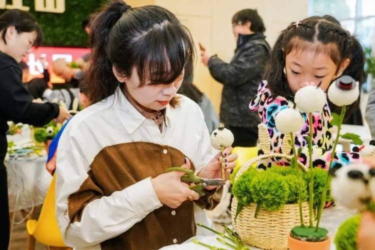 启动仪式后,AFA美国花艺学院认证教授莱莉老师为家长及孩子们带来一场“乐享亲子好时光”花艺体验活动,现场亲授插花技巧、介绍选取花材的方法、花卉色彩搭配及插花手法等;家庭成员共同完成一组花艺作品,享受一段轻松惬意的亲子慢时光,拉近亲人之间的情感交流……