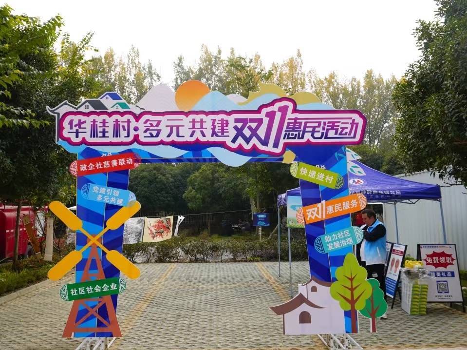 为了让村民们更加了解社区社会企业,同时,通过可感可及的变化和服务获得村民更多的认可,华桂村“两委”决定借助“双11”这个契机,由社区社会企业作为承办单位,举办“双11”线下市集,“一站式”实现快递进村助力流通、爱心企业公益便民、社区合伙人共创市集、村民实惠快乐购物。
