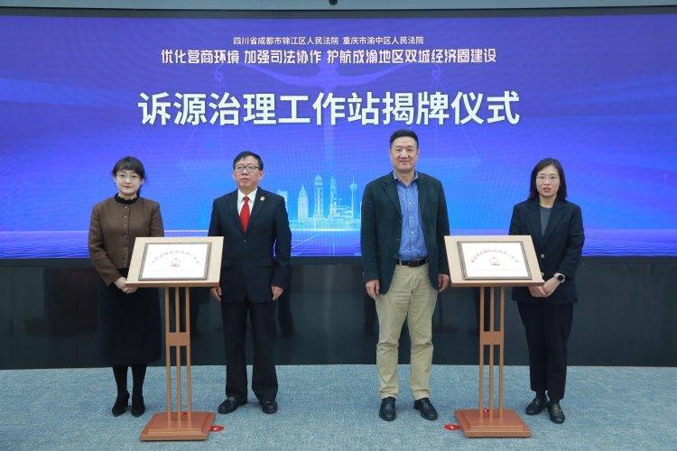 另外,渝中区法院与解放碑街道、石油路街道共建诉源治理工作站揭牌仪式也在现场进行。工作站将统一工作室命名及标识,统一工作室基本配置,统一工作室功能布局,实现诉前调解、网上诉讼、类案示范、风险提示、合规指引、法治宣传等六大功能,市场主体在商圈就可以完成诉讼活动,并在此基础上实现双城联动。