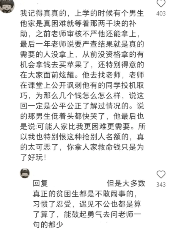 但也应了那句,“有利益的地方就会有纷争”,部分学生明明家庭条件并不贫困,却偏要去挤占名额,拿到手后还沾沾自喜,属实是叫人相当看不上了!