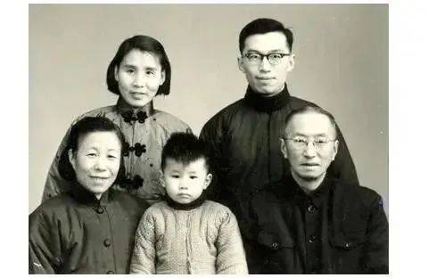1966年新春陈伯吹与夫人吴鸿志、子陈佳洱、媳周维金及长孙陈杲合影于上海