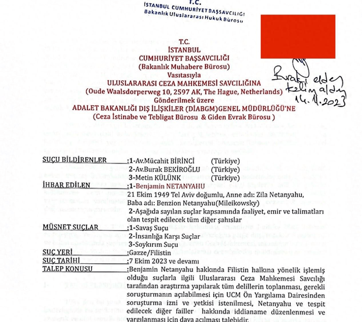 根据土耳其电视台的消息,土耳其目前正计划向国际刑事法院提起诉讼,指控对象为以色列总理内塔尼亚胡,原因是其在加沙地带实施了种族灭绝。对于此诉讼案,土耳其方面委派了三位律师负责,其中之一的库伦克在社交媒体上作出了官方解释。他写道,他代表的是土耳其公民的良知,向国际刑事法院对内塔尼亚胡提起诉讼。此外,库伦克还将内塔尼亚胡比作为21世纪的希特勒,认为他在加沙地带犯下了“种族灭绝罪”、“反人类罪”和“战争罪”,因此,内塔尼亚胡不可能得到宽恕,必须接受审判。