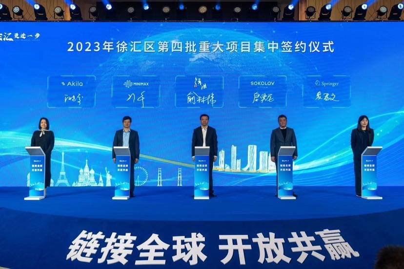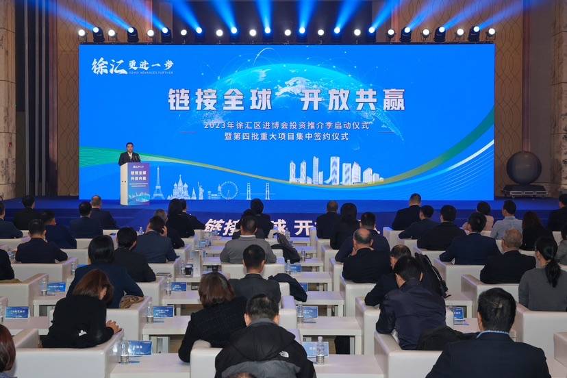 东方网11月15日消息:今天上午,2023年徐汇区进博会投资推介季启动仪式暨第四批重大项目集中签约仪式在漕河泾开发区举行,20个重大项目现场集中签约,“链接全球 开放共赢”进博会投资推介季正式启动。