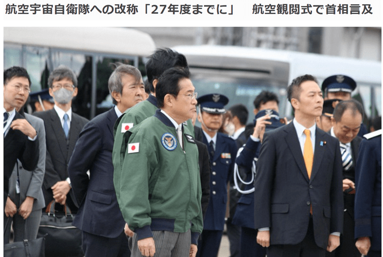 近日,在日本航空自卫队入间基地举行的航空阅兵式上,日本首相岸田文雄表示,将在2027年之前将航空自卫队更名为“航空宇宙自卫队”。