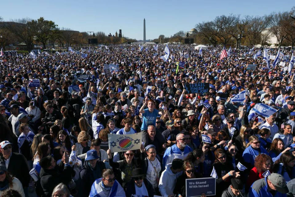 在内塔尼亚胡做出这番表态后,大量支持以色列的美国民众立即响应,开始有组织地前往华盛顿“进京勤王”。根据美国方面的统计,大约有6万名来自美国各地的挺以民众在美国主要犹太人组织主席会议、北美犹太协会等亲以色列团体的带领下来到了华盛顿国家广场。