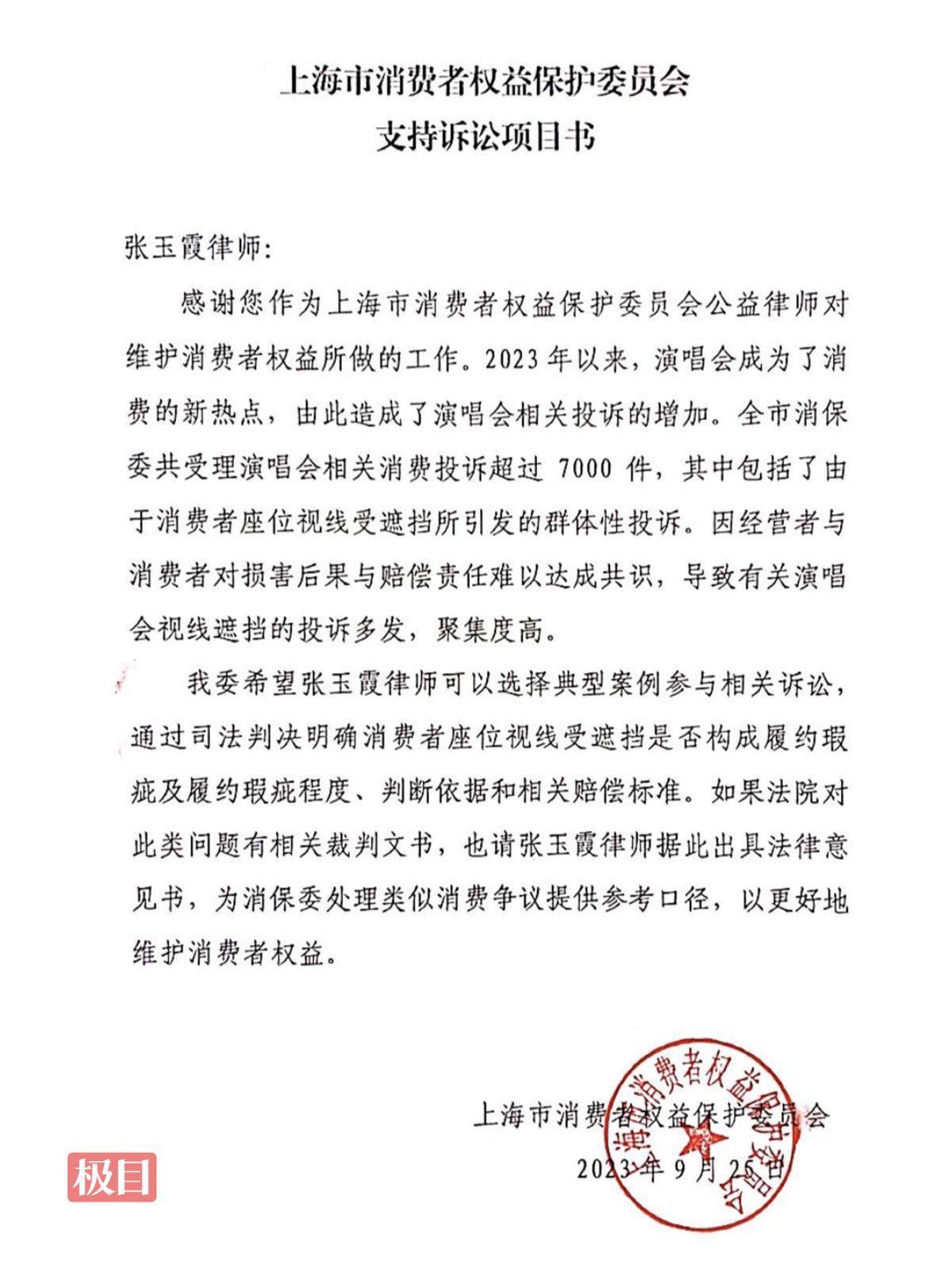 极目新闻记者从本案原告代理律师张玉霞处获悉,2023年以来,演唱会成为了消费的新热点,由此造成了演唱会相关投诉的增加。上海市消费者权益保护委员会共受理演唱会相关消费投诉超过7000件,其中包括了由于消费者座位视线受遮挡所引发的群体性投诉。因经营者与消费者对损害后果与赔偿责任难以达成共识,导致有关演唱会视线遮挡的投诉多发,聚集度高。作为上海市消费者权益保护委员会公益律师,张玉霞律师选择了本案作为典型案例参与诉讼,希冀通过司法判决明确消费者座位视线受遮挡是否构成履约瑕疵及履约瑕疵程度、判断依据和相关赔偿标准,为消保委处理类似消费争议提供参考口径,以更好地维护消费者权益。