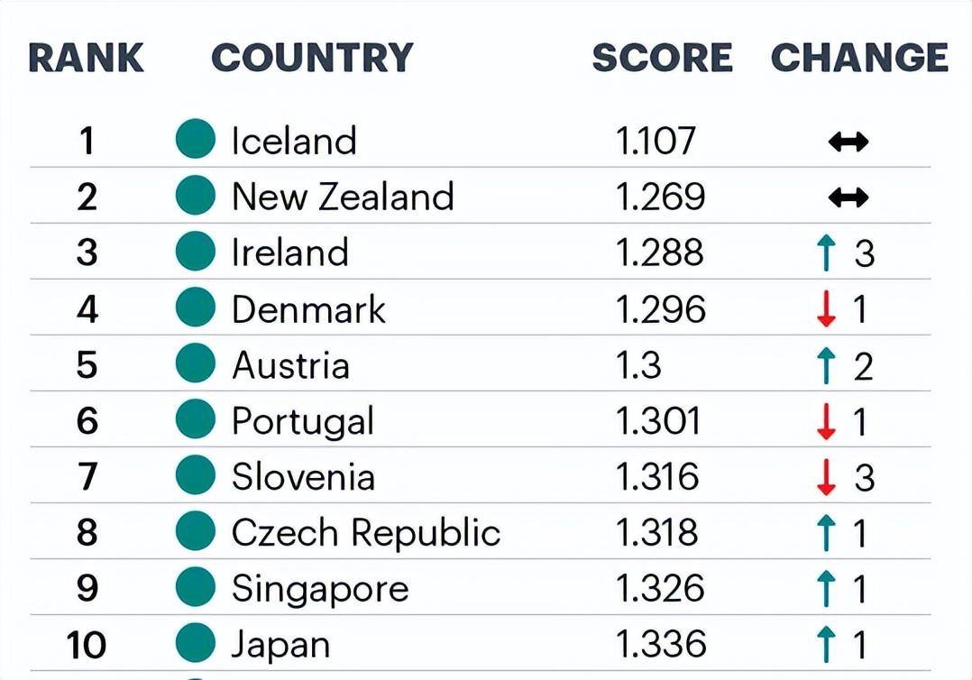据英国经济与和平研究所发布的2022年全球和平指数(Global Peace Index),日本排第10名