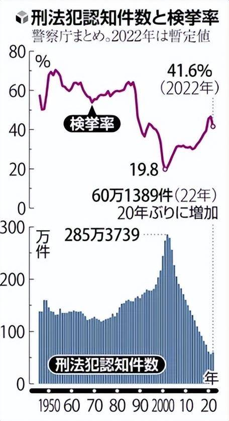 随着疫情结束,人们恢复正常活动之后,日本的犯罪率时隔20年有了上升的趋势。