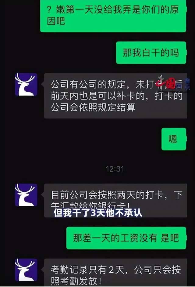 当事人小依(化名)称,自己9月11日签完实习合同后当天就开始上班了,直到下午店长才让自己进打卡群,也并未提醒后续需要补卡,所以自己实际上了3天班,但只打了2天卡。