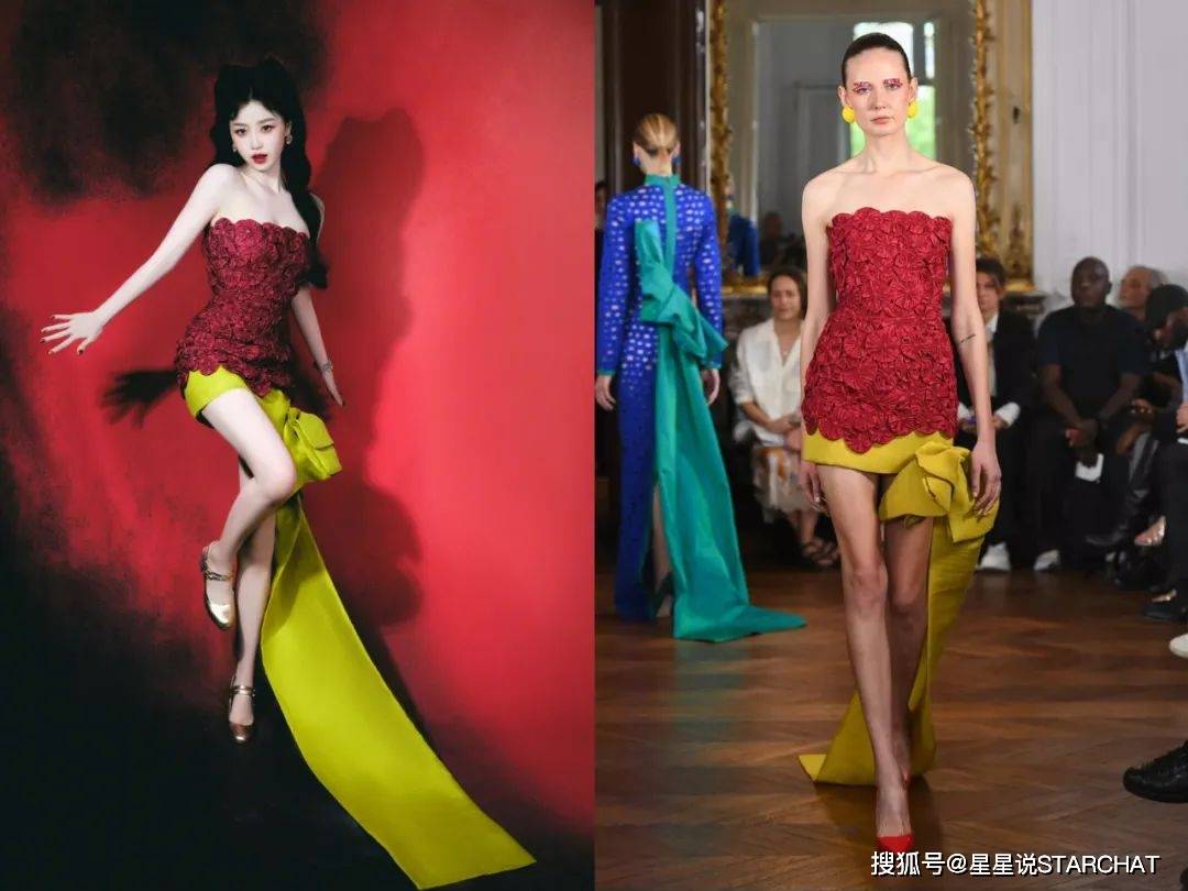 虞书欣此次上脚Christian Louboutin路铂廷 Miss Jane 55女士高跟鞋,身着Imane Ayissi 2023 秋冬高定,俏皮可爱。这些年虞书欣爆剧不断,时尚资源和表现力也极佳。