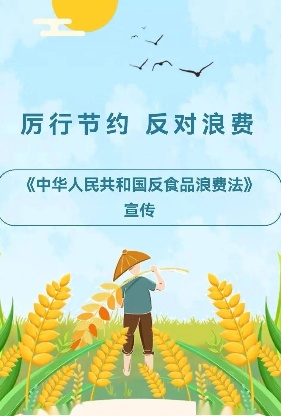 节约粮食,是美德,是素质,更是责任。要大力弘扬中华民族勤俭节约的优良传统,树立节约光荣、浪费可耻的思想观念,厉行节约,反对浪费;要充分认识粮食安全的重要性,时刻绷紧节约粮食这根弦,将艰苦朴素、勤俭节约的理念内化于心、外化于行。