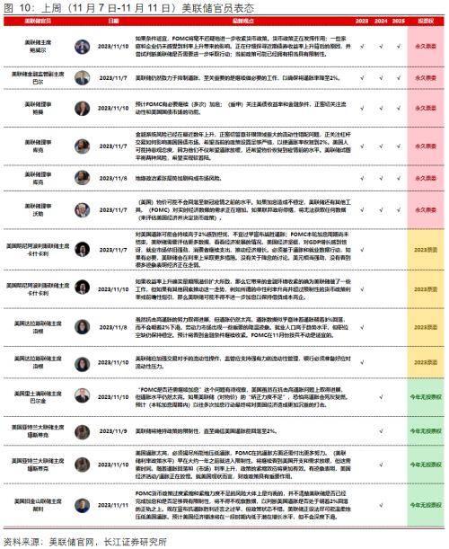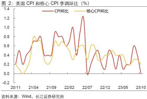 2、本月美国CPI数据显示当前整体通胀和核心通胀压力正在改善,美联储进一步加息的必要性并不高,本轮加息周期或已结束。而就业市场的韧性意味着距离降息仍有距离,美联储货币政策或已经从“Higher”转向“Longer”。