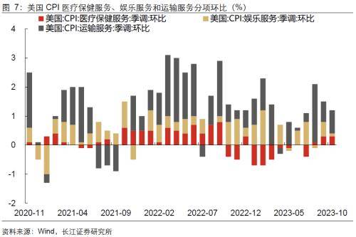 剔除掉住房租金后,美国超级核心服务通胀放缓,本月运输服务、医疗保健、娱乐服务CPI环比分别上涨0.8%、0.3%、0.1%,合计拉动整体CPI上涨0.07个百分点,拉动率较上月降低0.01个百分点,指向美国通胀粘性正在减弱。