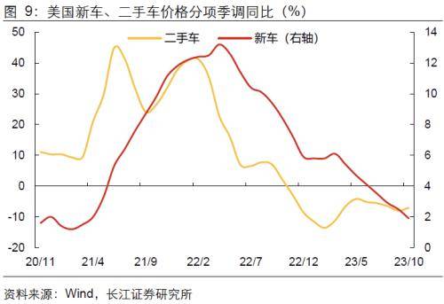 第三,商品需求仍然低迷,二手车跌幅收窄,商品通胀压力不大。