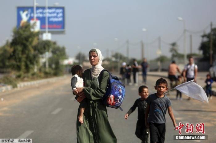 资料图:当地时间11月7日,逃难中的加沙民众。