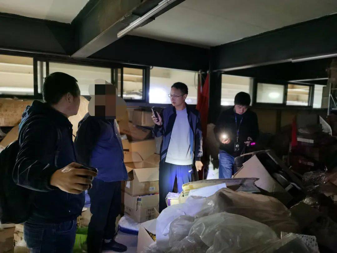 (图为嫌疑人在其储货仓库内被民警抓获)