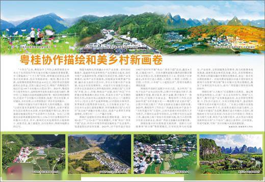 “十四五”以来,粤桂协作工作队认真贯彻落实中央关于东西部协作和实施乡村振兴战略的重要部署,学习借鉴浙江“千万工程”经验,按照建设宜居宜业和美乡村的要求,结合当地政府统一规划,整合各方资源,安排粤桂财政帮扶资金4.02亿元,同时带动其他财政和社会资金,总投入超过10亿元,帮助广西粤桂协作地区打造105个乡村振兴示范点(带)。2023年,粤桂协作力度有所加大,选树桂林市龙胜各族自治县马海村、柳州市三江侗族自治县林溪镇冠洞村等一批民俗特色鲜明村,打造57个乡村振兴示范典型,促进广西乡村发展、乡村建设、乡村治理,以点带面推动广西乡村全面振兴。