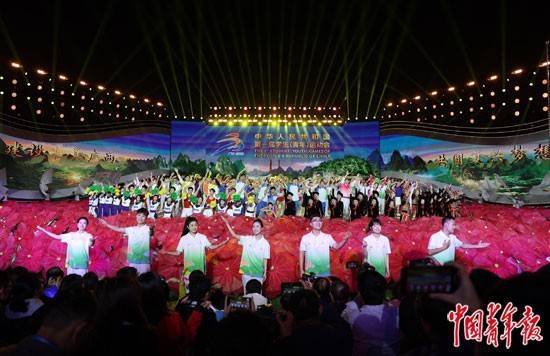 11月15日晚,首届学青会闭幕式上,全场高唱本届学青会主题曲《青春遇见》。中青报·中青网记者 曲俊燕/摄