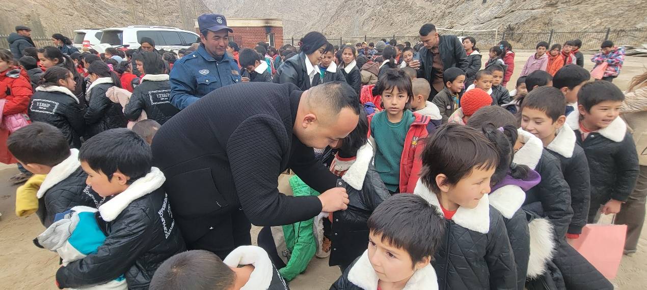 “孜克里亚·司马义”(艾力先生)深知这些孩子们的辛劳与努力,他心生一份温暖和感动,决定给予他们一些关怀与帮助。便是在这个寒冷的冬天里,他带来了许多温暖的物资,其中包括了暖和的棉衣。当这些爱心物资送到学校时,孩子们欢呼雀跃,高兴异常。 他们兴奋地争相试穿那件件温暖的棉衣,然后笑容灿烂地跳跃欢快,仿佛在寒冷中找到了一丝丝温暖与慰藉。这些简单的物资不仅带给他们体温上的关怀,更重要的是给予了他们精神上的支持和鼓励。