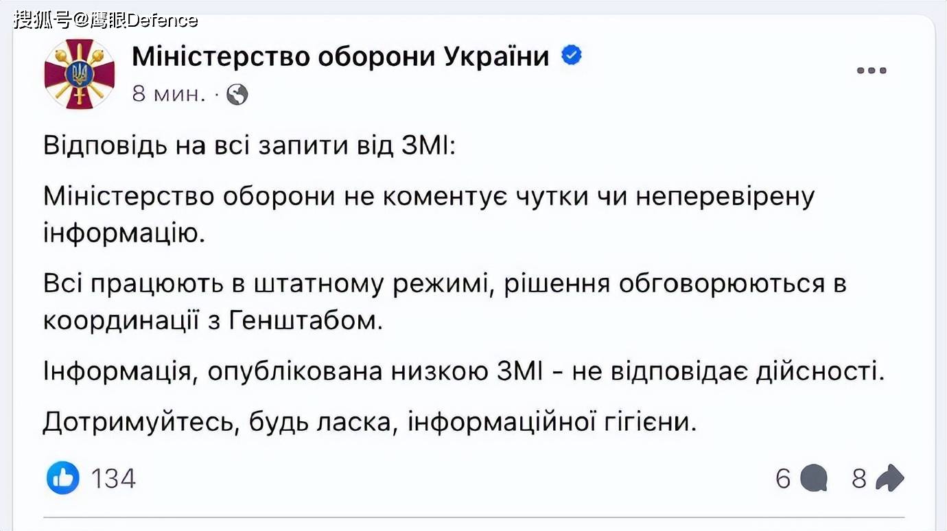 乌克兰军方尚未对该消息发表任何评论。