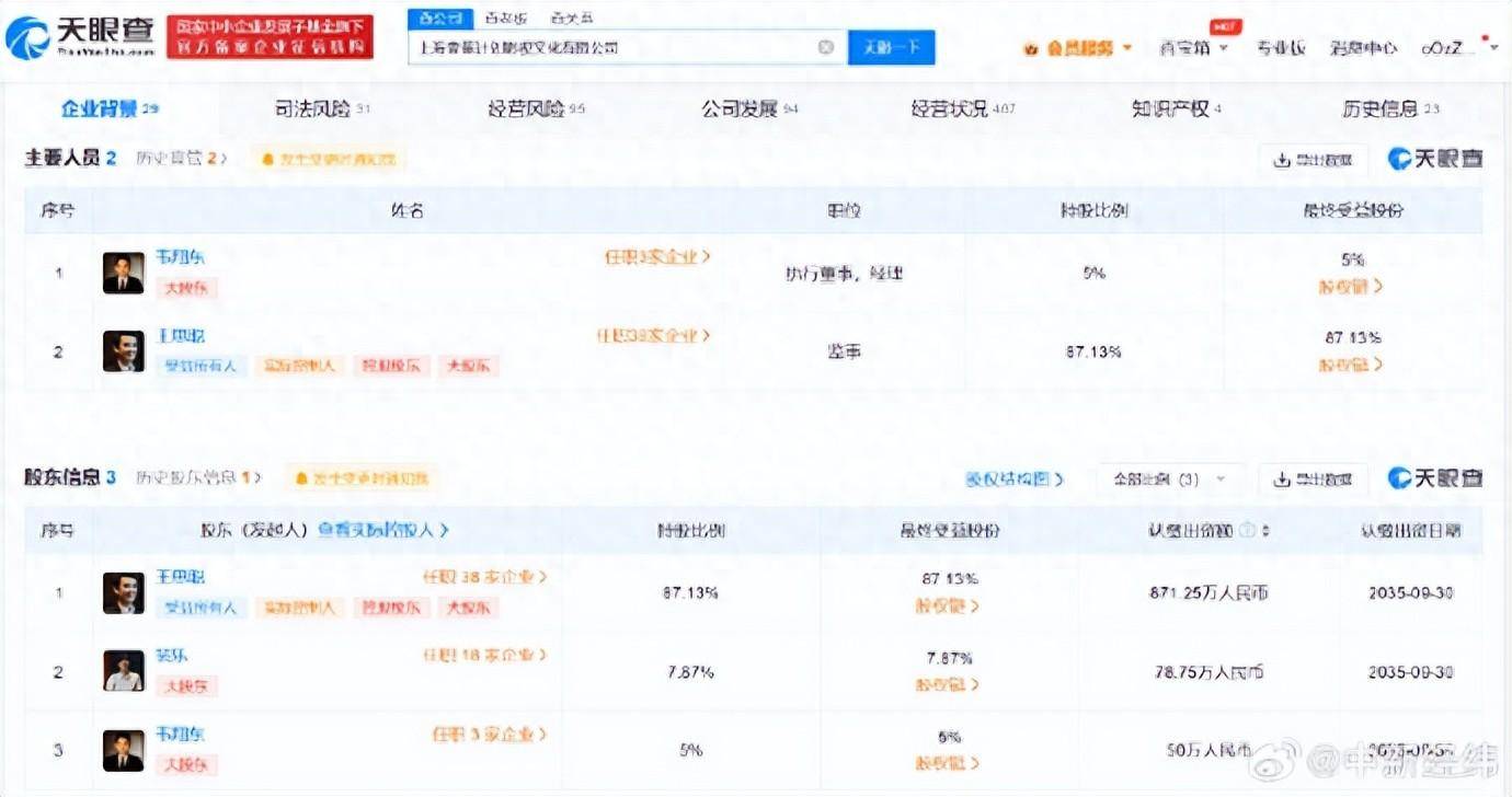 天眼查App显示,近日,上海香蕉计划影视文化有限公司新增一则被执行人信息,执行标的2.4万元,执行法院为上海市静安区人民法院。 该公司成立于2015年10月,法定代表人为韦翔东,注册资本1000万人民币,经营范围含影视策划、电影发行、项目投资、组织文化艺术交流活动等,王思聪持有该公司87.13%股份并担任监事。