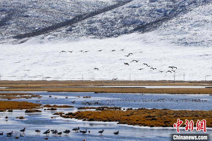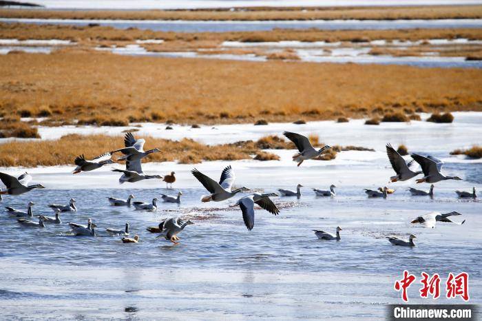 原标题:青海玉树:湿地迎来成群越冬候鸟