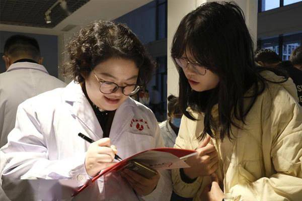 献血学生向重庆市血液中心工作人员咨询献血注意事项。刘林杰摄