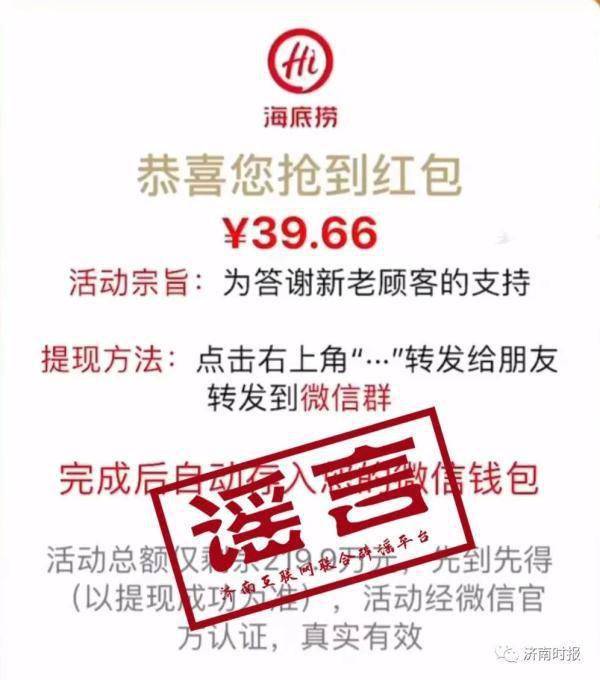 海底捞官网显示,自2019年7月起,其已针对相关信息做过多次声明,涉及“海底捞招聘线上兼职”、“违规售卖海底捞门店等位号码”、假冒“海底捞”及“海底捞火锅”名义发布“【海底捞】宴请全城,500元现金券免费送!”等虚假信息。