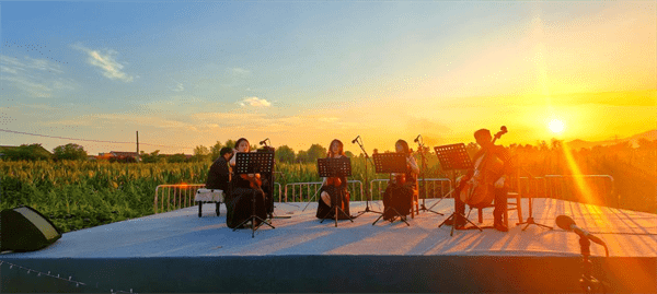 某种意义上,这场音乐会还相当“奢侈”:以金色的田野大地为舞台,以远方的树木、村庄组成的天际线为幕布,以微风为音响,以夕阳为灯光。