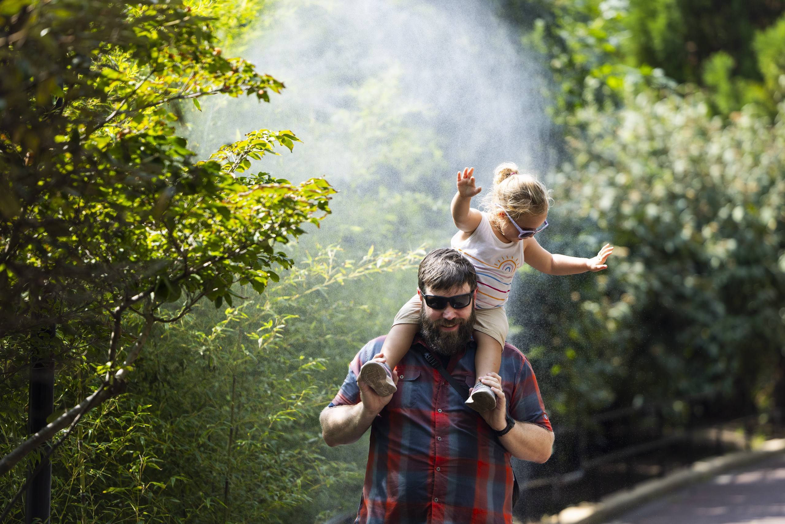 当地时间2023年9月6日,美国华盛顿,市民在水雾下消暑降温。IC photo 资料图