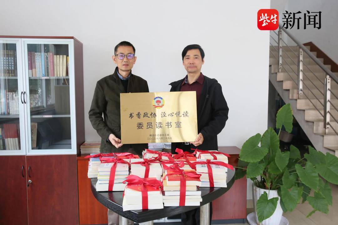 活动前,横泾街道党工委委员张金华与吴中区政协委员袁剑春进行“书香政协 泾心悦读”委员读书室授牌及赠书仪式。