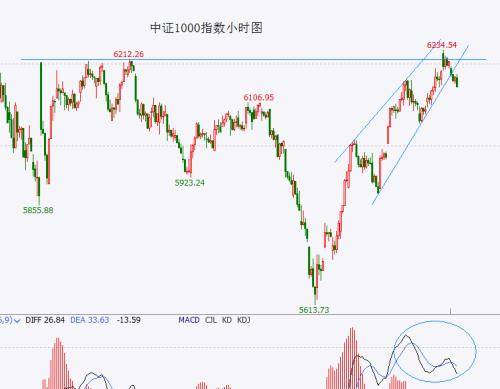 A股方面,从富时A50指数期货来看,今日收中阴,完全吃掉了周三的中阳,这表示美国CPI的利好已经被消化了。如果再处中长阴破掉13日低点,那么新一波下跌仍将开启。从中证1000指数来看,在9月小震荡平台上轨处承压回落,日线形成顶分型。小时图看楔形下轨已经被跌破,MACD形成顶背离,高点信号明确,后市可等待进一步的下跌来确认。