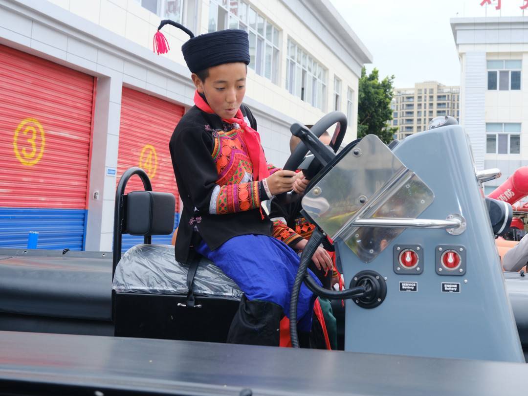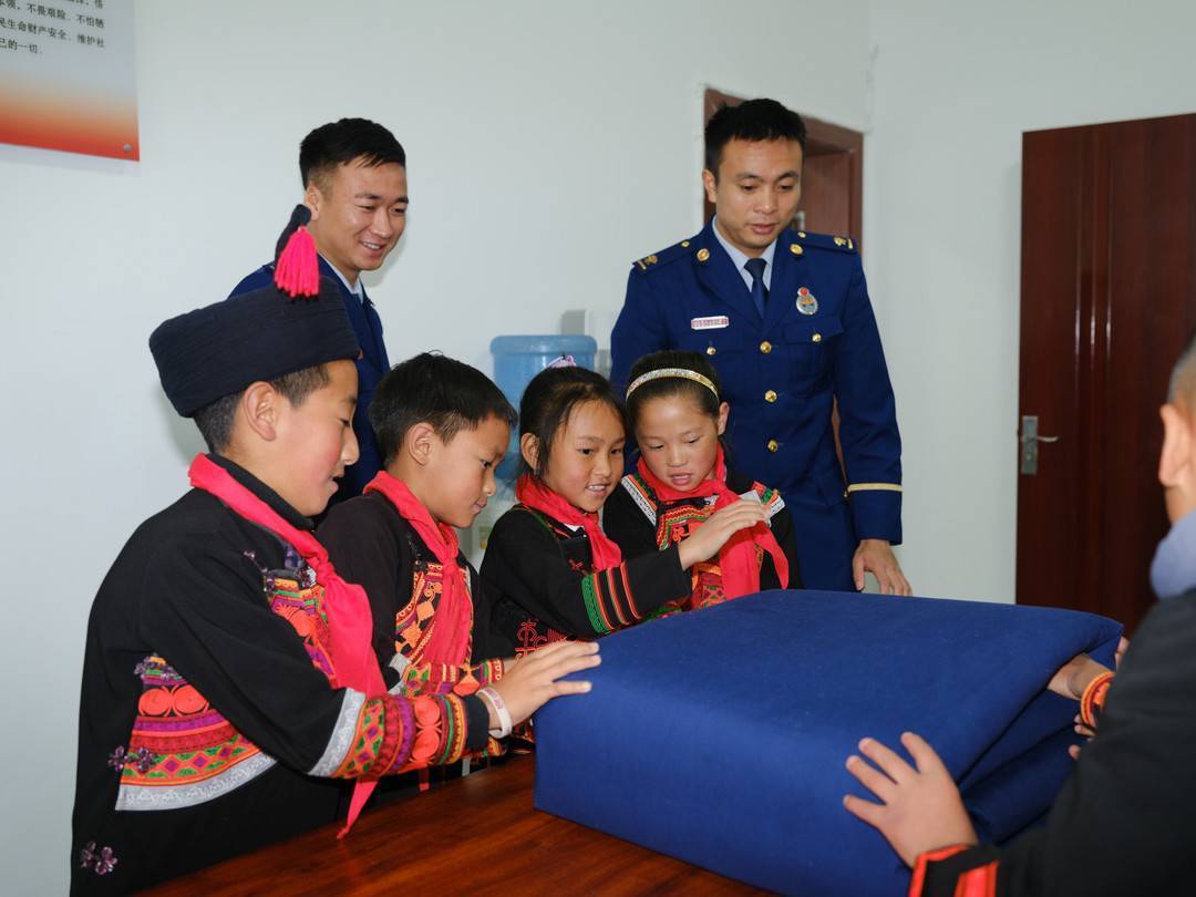 活动的开始,学生和老师观看安全教育警示片和“天狼”形象宣传片。“好帅啊!我也要成为一名消防员!”有学生在现场大声说到。随后,森林消防员们现场演示整理内务的方法,手把手教他们叠被子、整理内务,同时详细讲解了消防安全科普知识,让同学体验救援装备穿戴,成为一个个“小小消防员”。
