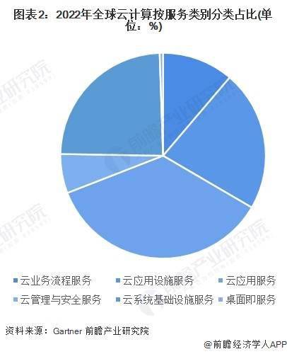 根据Gartner公布的数据显示,2022年全球云计算市场中,云应用服务(SaaS)的市场占比最大,占比超过了35%。此外,占比超过20%的服务类型还包括云应用设施服务(PaaS)和云系统基础设施服务(IaaS),占比均在20%以上。