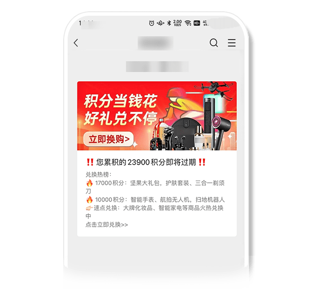 标题、封面或正文内容以红包、积分、现金奖励等利益为噱头,包括通过新的红包到账或非用户原有的红包、积分过期等形式欺骗用户,诱导用户点击,而正文内容实则为不相关或不真实的营销内容。