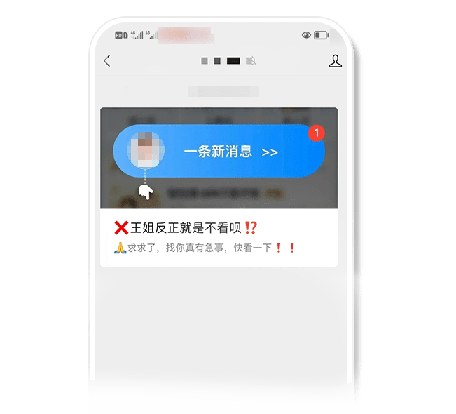 标题、封面或正文内容通过仿冒系统消息提醒的形式欺骗用户,诱导用户点击,而正文内容实则为不相关的营销内容。