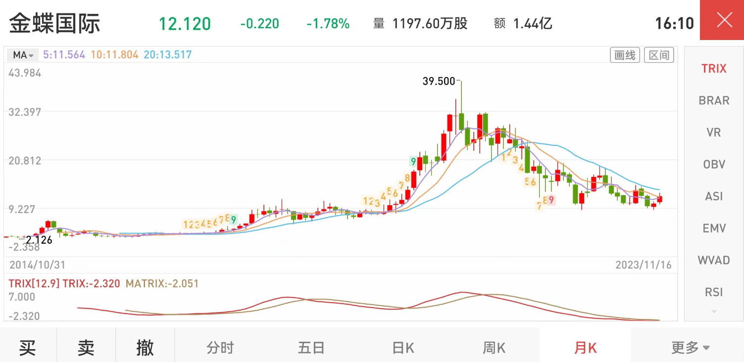 金蝶国际上市以来股价走势(截图自券商APP)