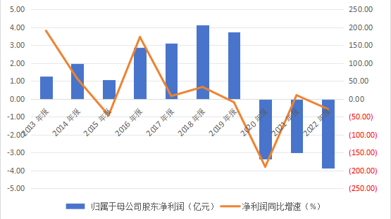 近三年归属于母公司股东净利润亏损超10亿元