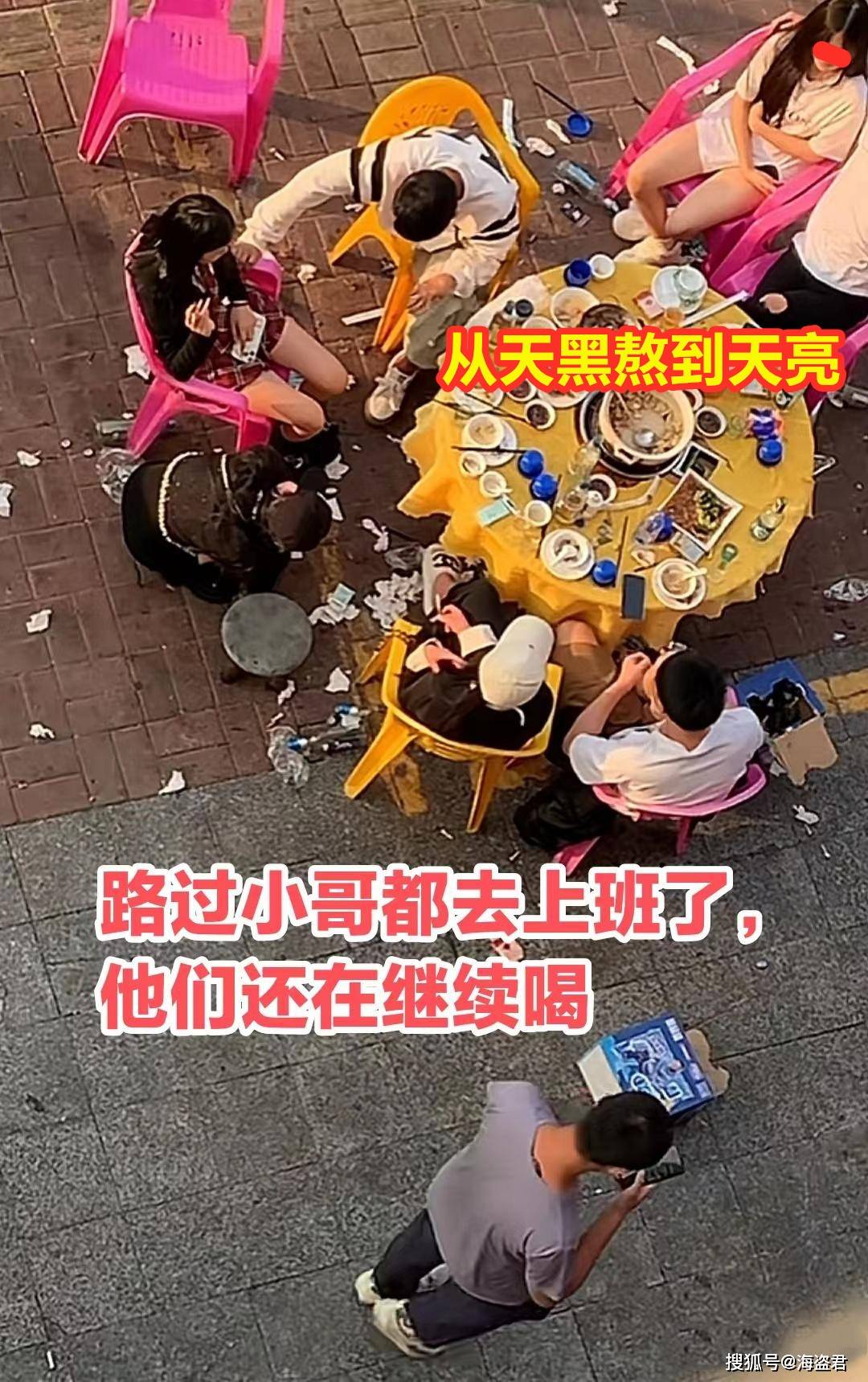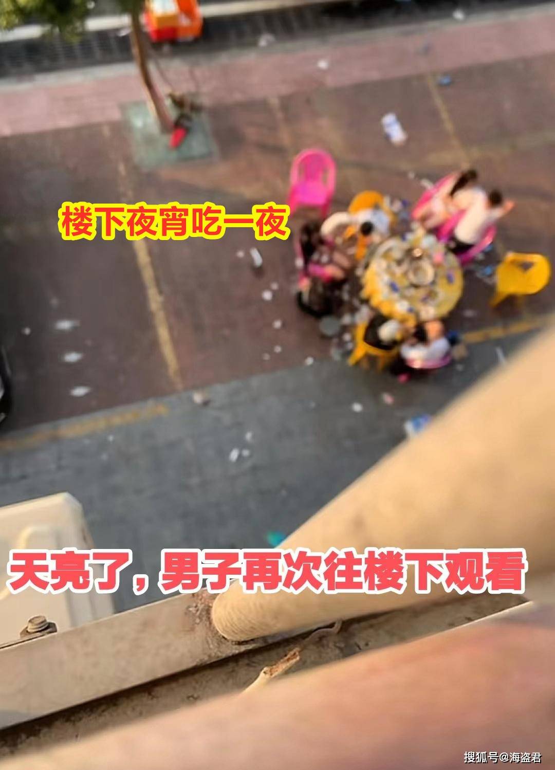 男住户虽然一夜没睡好,但急赶着上班,并没有跟这几个人深究,总之到他走的时候,这几人还坐在那边吃着呢。