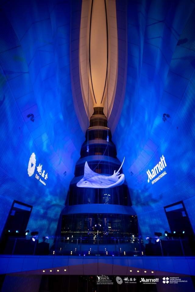 本次晚宴由万豪国际中国东区商务委员会主办,万豪国际集团旗下华东区91家酒店参与,约588名企业客人及个人赞助者出席,各界爱心人士与到场嘉宾积极参与了42件慈善拍品与83件静默拍品的拍卖,它们不仅彰显了捐赠人的爱心和善举,也凝聚了一众爱心人士对乡村体育教育事业的美好期待。拍卖现场气氛热烈,嘉宾们积极竞拍。本届慈善晚宴以“亚特兰蒂斯”为主题,寓意人与海洋和谐共生,以汲取传说中的海底之城为灵感,打造沉浸式湛蓝海洋,令宾客仿若置身于静谧深邃的海底世界。由万豪精英厨师团队联手定制的海洋主题佳宴,让宾客尽享美味的同时增添了一份特别的魅力和意义。