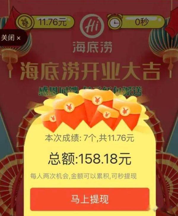 今年1月15日,一个名为“我店已定明日开业啦”的链接,点击进入后显示,“海底涝”开业大吉,感恩回馈亿元红包派送。限时15秒,可以上滑抢红包。