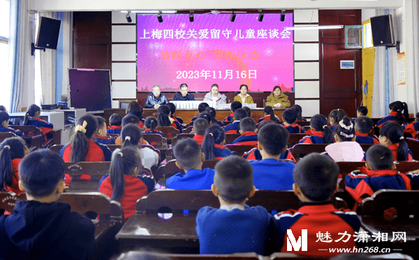 11月16日下午,新化县上梅街道第四学校举行关爱留守儿童座谈。