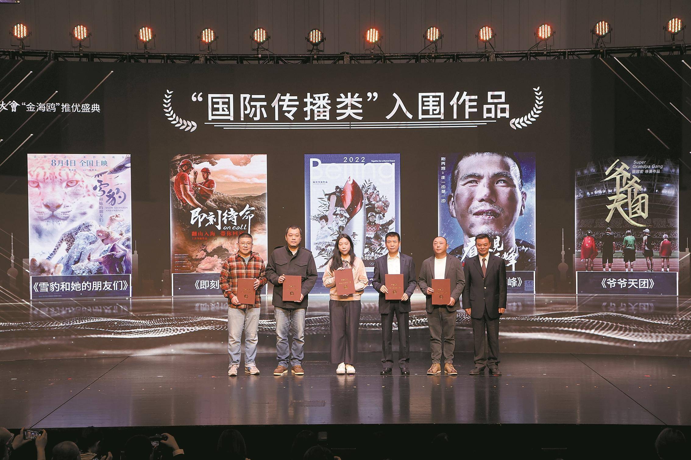 第二届华语纪录电影大会推荐征集活动共收到近三年来获得公映许可证的纪录电影作品32部。由业界权威专家、影视制作发行放映机构负责人、资深纪录电影导演组成的大会推荐委员会推举出四个类别入围推荐作品和四个类别入围推荐个人。其中,《穿越烽火》等三部影片入围文化历史类推荐作品,《雪豹和她的朋友们》等三部影片入围自然科学类推荐作品,《北京2022》等六部影片入围社会纪实类推荐作品,《看不见的顶峰》等五部影片入围国际传播类推荐作品;《爷爷天团》等作品入围特别推荐导演,《不孤岛》等作品入围特别推荐摄影,《一路幸福》等作品入围特别推荐剪辑,《战争中的母亲——胶东乳娘》等作品入围特别推荐音效。在18日晚的“金海鸥”推优盛典中,将揭晓特别推荐纪录电影及各类别推荐结果,同时宣布特别推荐年度纪录电影机构。