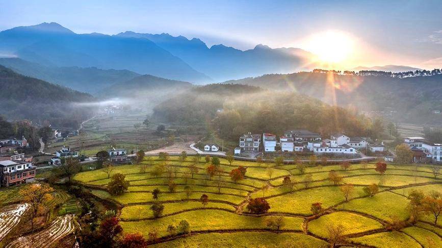 秋冬之际,河南省信阳市商城县伏山乡的乌桕谷正是观赏佳季,一天之内,乌桕谷内景色各异,让周边寻找美丽风光的游人喜不自胜,争相涌来。