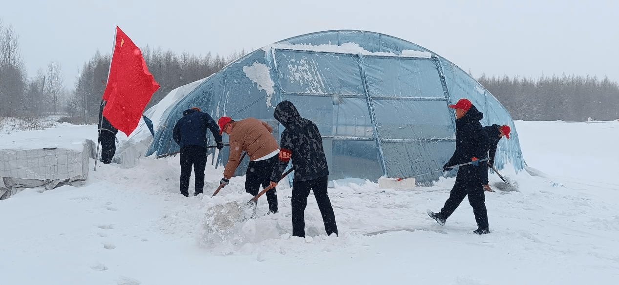 第十二管理区组织党员干部在叠盘暗室大棚及大棚基地清理积雪(央广网发 杨冶 摄)
