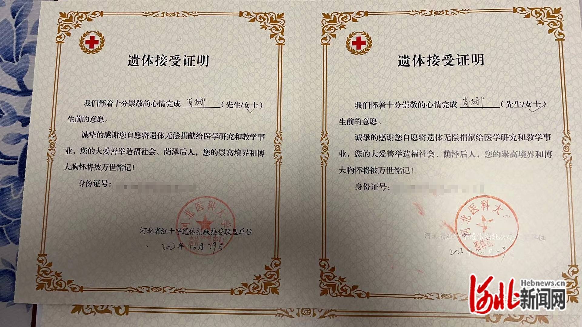 肖娜的遗体接受证明。(来源/刘鑫提供)